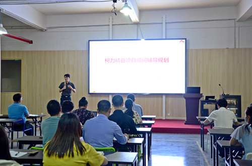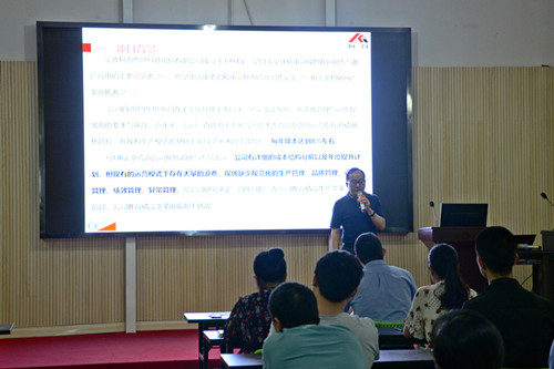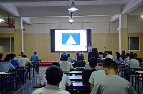 最后,王树永老师围绕“柯力精益生产推进机制”对安徽公司全体管理人员进行了培训,从工作三活动、七大浪费、改善四原则等方面阐述和讲解。